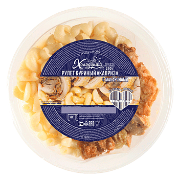 Рулет куриный "Каприз" с грибами и жаренным луком с макаронами, 250г/12шт ТМ Холодушка