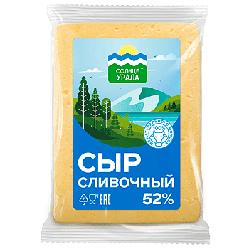 Сыр "Сливочный" полутв. 52%, вес ~160-180г/6кг/ТМ Солнце Урала/Белебеевский МК