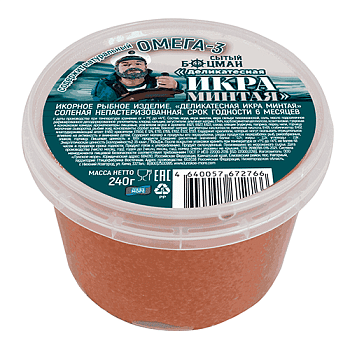 Деликатесная икра минтая СЫТЫЙ БОЦМАН 240г пл/б спайка Лунское море