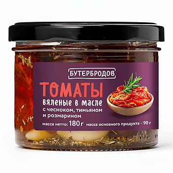 Консервы: Вяленые томаты в масле с чесноком, тимьяном и розмарином, 180г/8шт/Бутербродов